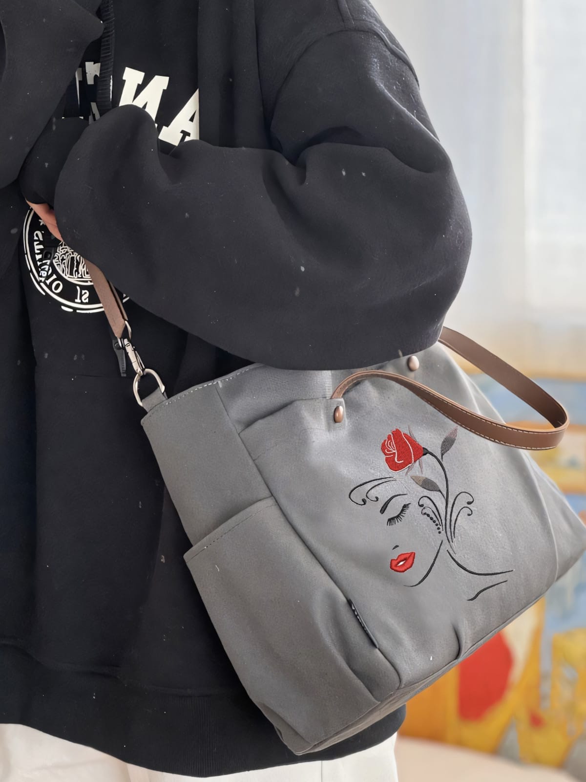 Looking for the ultimate gift that combines style, functionality, and artistic flair? The Embroidered Grey Color Elegant Female Line Art Everyday Women Bag is the perfect choice for the modern fashionista in your life. This exquisite bag effortlessly embodies chic sophistication and contemporary design, making it a standout accessory.