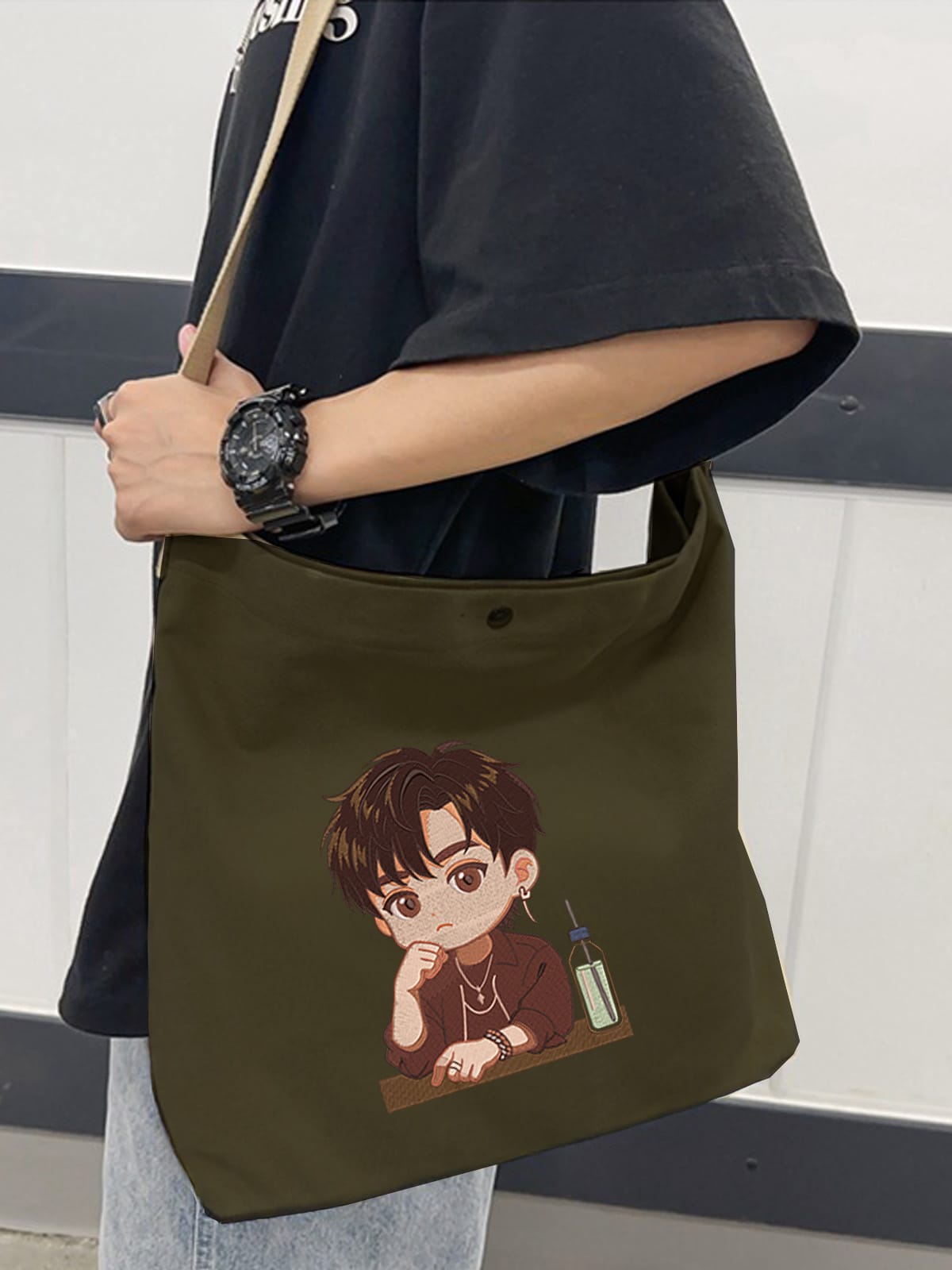 - Sporty Vibes: Combine the tote with joggers and a cropped hoodie for a sporty aesthetic. This comfortable outfit is perfect for running errands or heading to the gym while showcasing your love for Jungkook.
