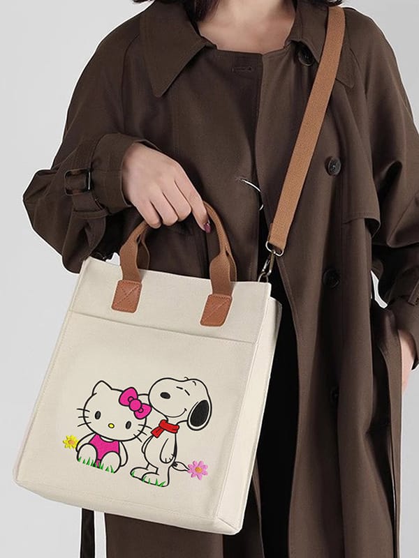 - Sporty Style: Achieve a sporty look by teaming the tote with high-waisted leggings and a cropped hoodie. This laid-back style is ideal for a gym session or a day at the park, all while showcasing your love for Snoopy and Woodstock.