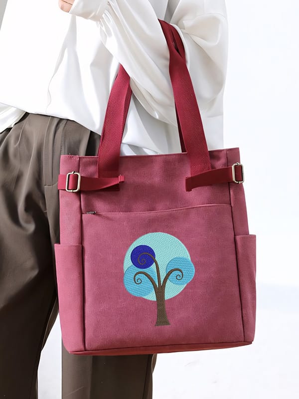| modern appeal blue circle artistic flair stylized tree | This embroidered shoulder bag showcases a modern design style, highlighted by an eye-catching blue circle motif. Within the circle, a stylized tree is elegantly embroidered, displaying intricate details and artistic flair. The vibrant colors and dynamic shapes of the tree create a captivating visual focal point, adding a touch of nature-inspired charm to the bag. This bag beautifully balances functionality and artistry, making it an ideal choice for those seeking a unique and fashionable accessory. Perfect for casual outings, it effortlessly enhances any outfit with its creative design. | ![]() |